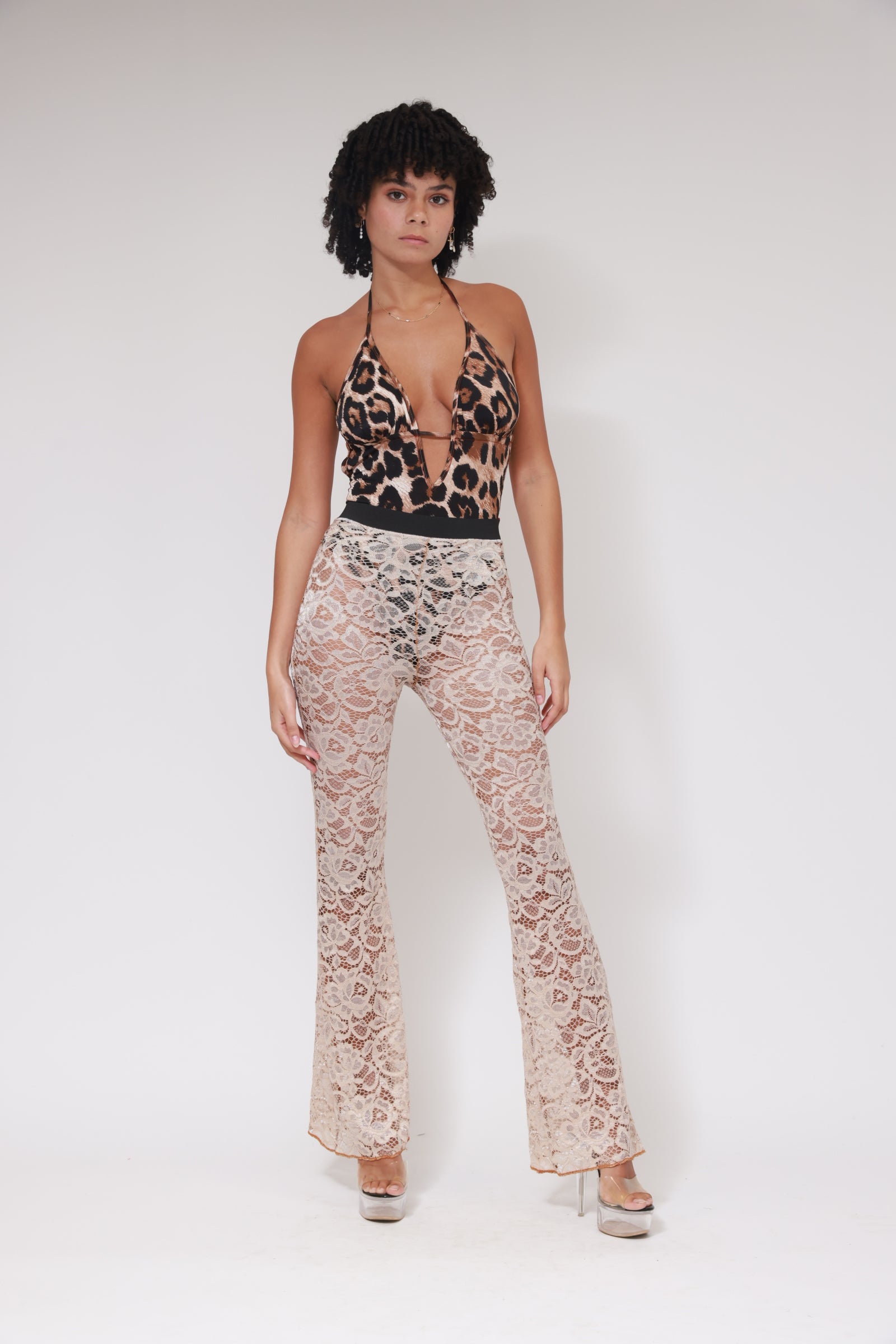 LEGGINGS LONGS ÉVASÉS EN DENTELLE / BEIGE