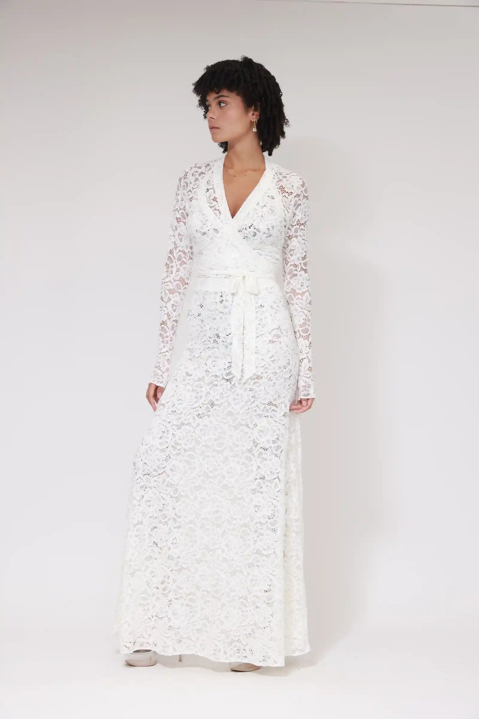 Haut cache-cœur en dentelle à manches longues / Blanc