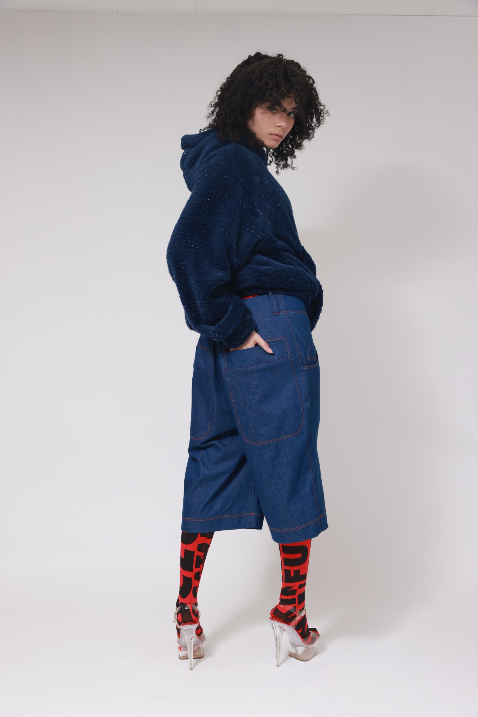 PANTALON COURT ET BAGGY EN DENIM XB