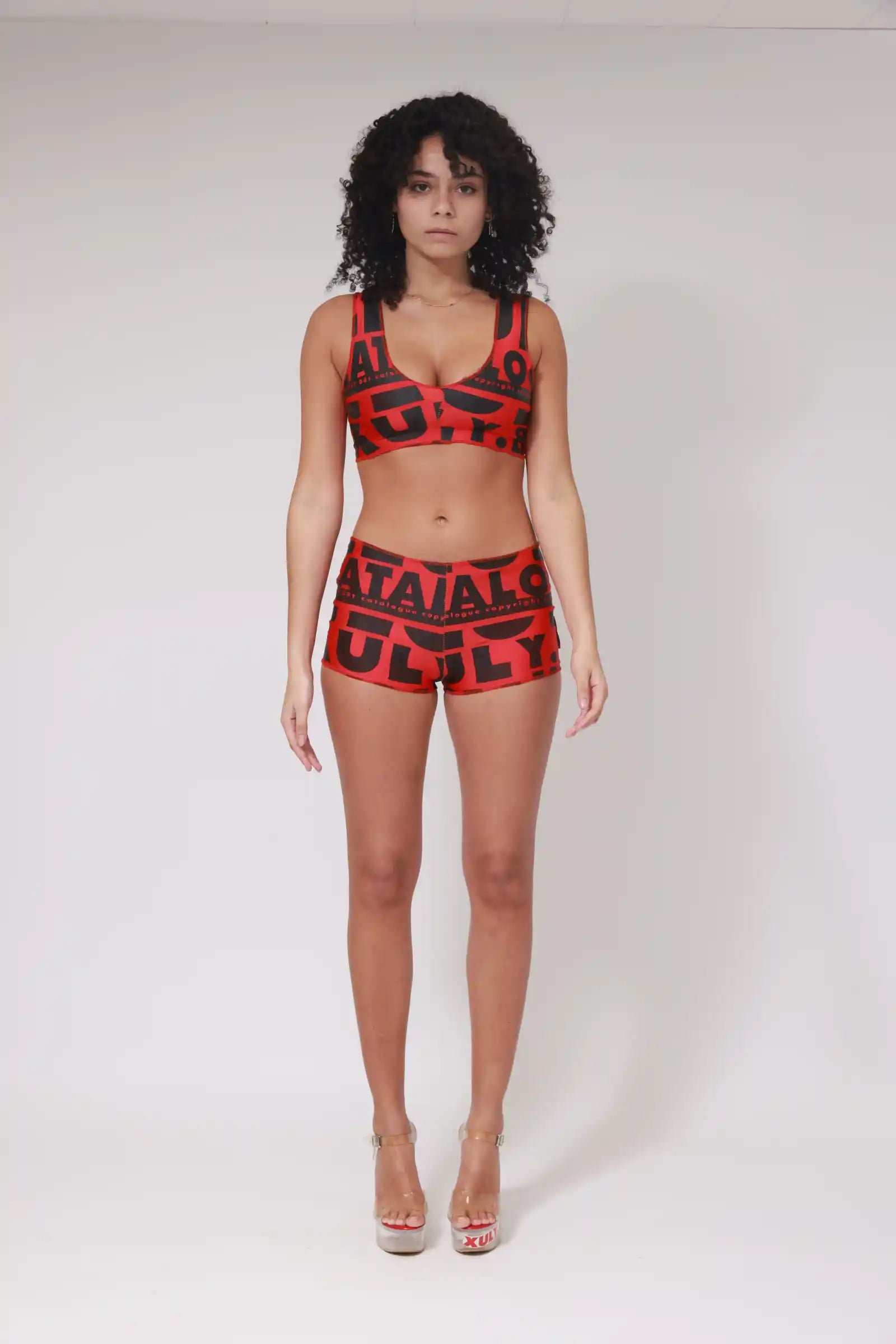 Brassière à imprimé drapeau XB / Noir sur rouge