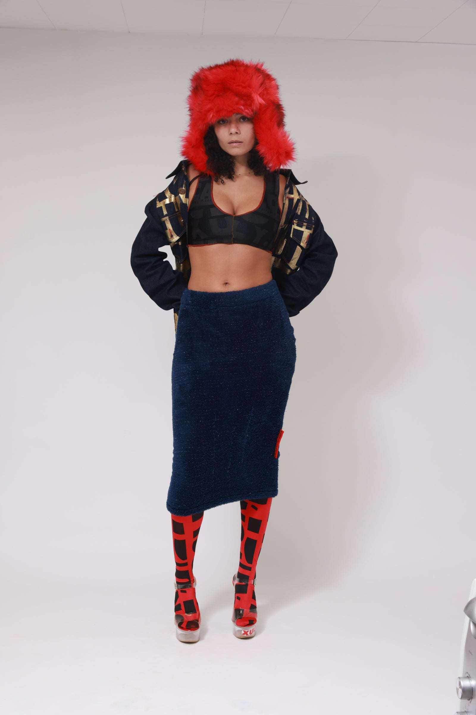 GLITTER FLEECE PENCIL SKIRT