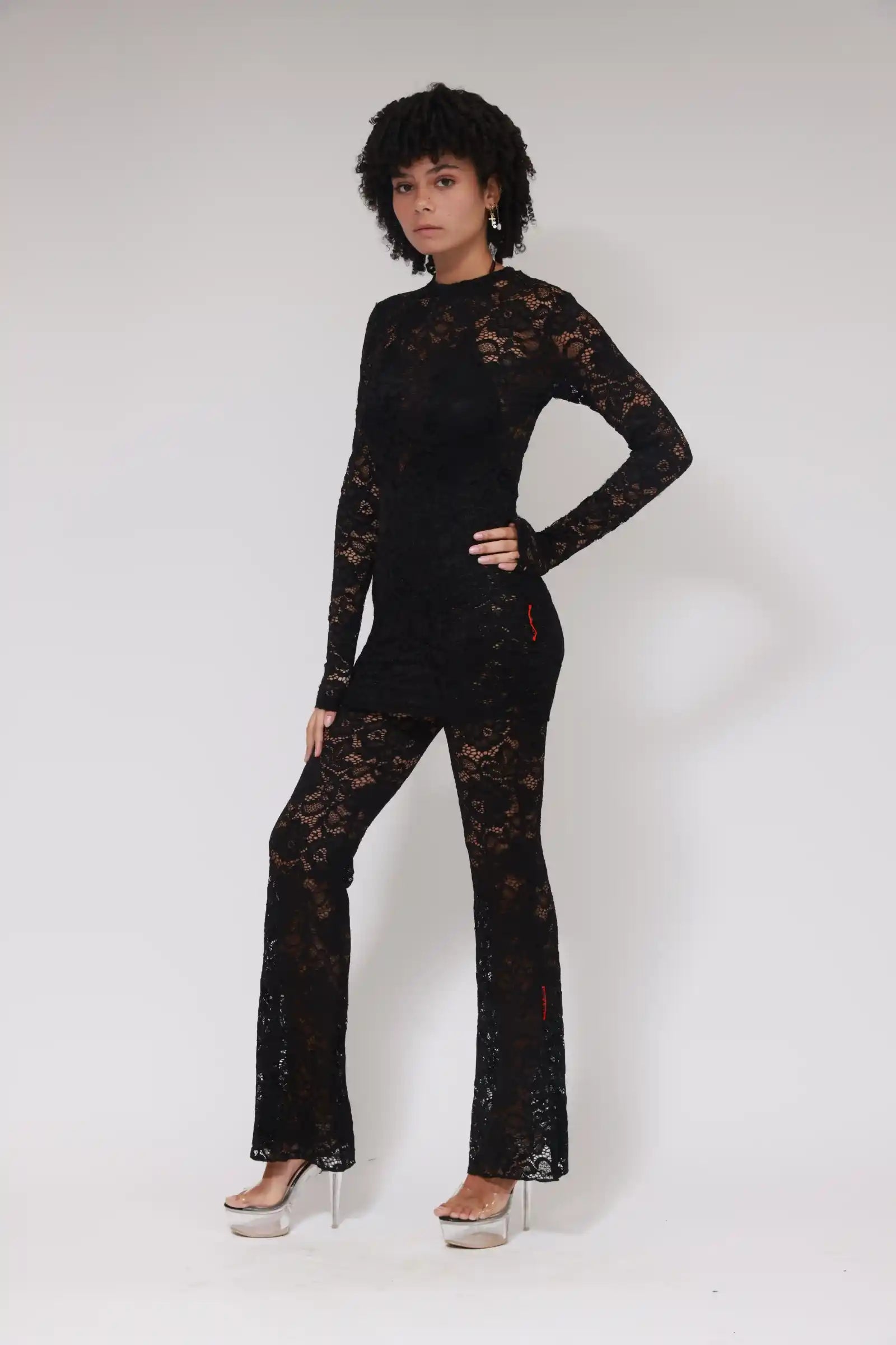 LACE LONG FLAIRE LEGGINGS / BLACK